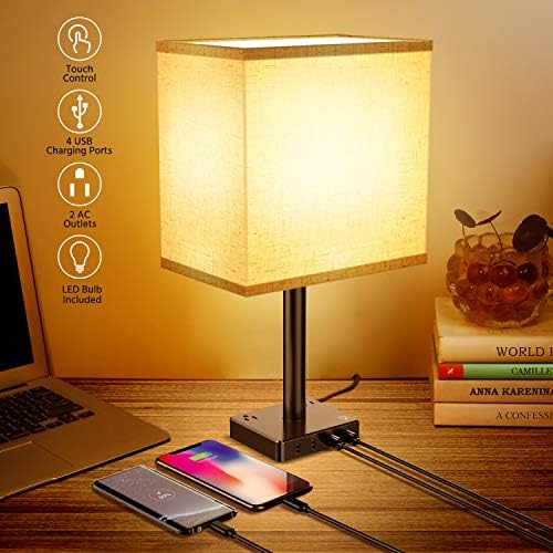 Dimmable Nightstand Lamp - Touch Control Table Lamp 3 Way Dimmable Nightstand Lamps With 2 Usb Charging Ports Fabric Shade Modern Bedside Desk Lamp For Bedroom Living Room 6w 2700k E26 Led Edison Bulbs Included Pricepulse / You don't have to struggle to find the on/off switch in the dark.