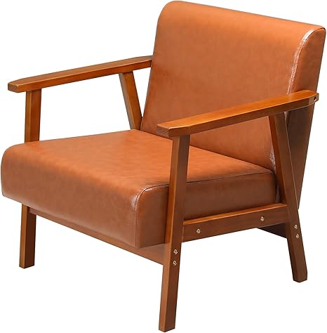 With a loose cushion back and seat wrapped in smooth faux leather, this comfy chair.